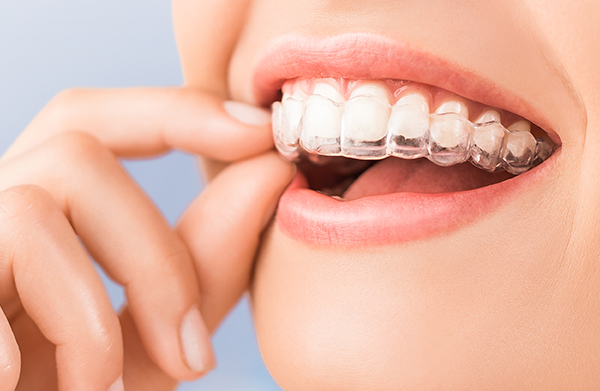 Clear aligners use transparent plastic trays instead of brackets and wires to gradually straighten teeth. The thin, transparent plastic appliances are fabricated from a precise dental model impression, through a carefully planned lab process that predicts each stage of tooth movement.