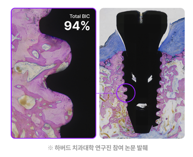 빠른 골 유착 효과로 단기간 내 94%의 골유착률을 기록했습니다. (하버드 연구진 참여 논문 기반)